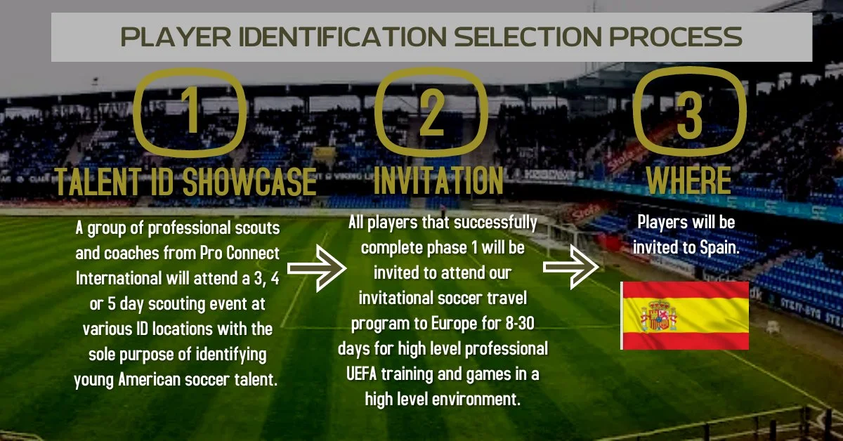 At each of these ID camps we will have our European professional UEFA ID scouts in attendance and if a player is good enough they will have the opportunity to be invited to Spain for one week to join our Play Abroad Academy Experience’ working with our Spanish based professional partner program the International DA of Valencia working with their Academy development program for 7 days on the ground.
